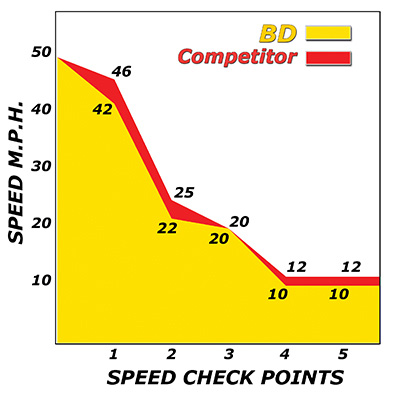 Test shows that the BD brake was equal to or had better performance than our competitors brake at slowing down the vehicle.