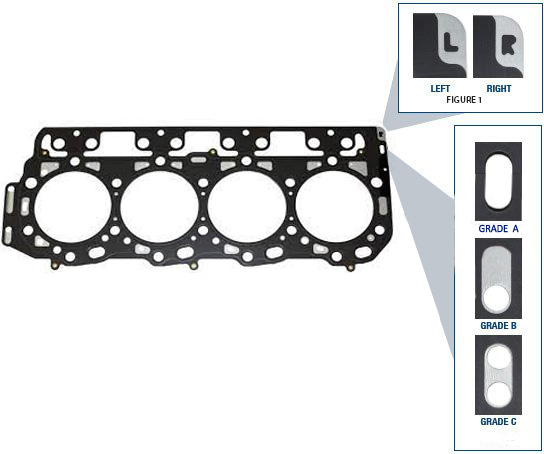 The 6.6 L Duramax engine families utilize three different grades (thicknesses) of head gaskets that are also specific to which side of the engine they are being installed on. The table and images below will aid in identifying the proper head gaskets required for your specific application. The head gaskets listed below work in conjunction with the AP0045 and AP0046 Head Installation Kits.